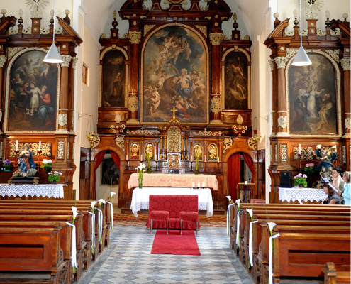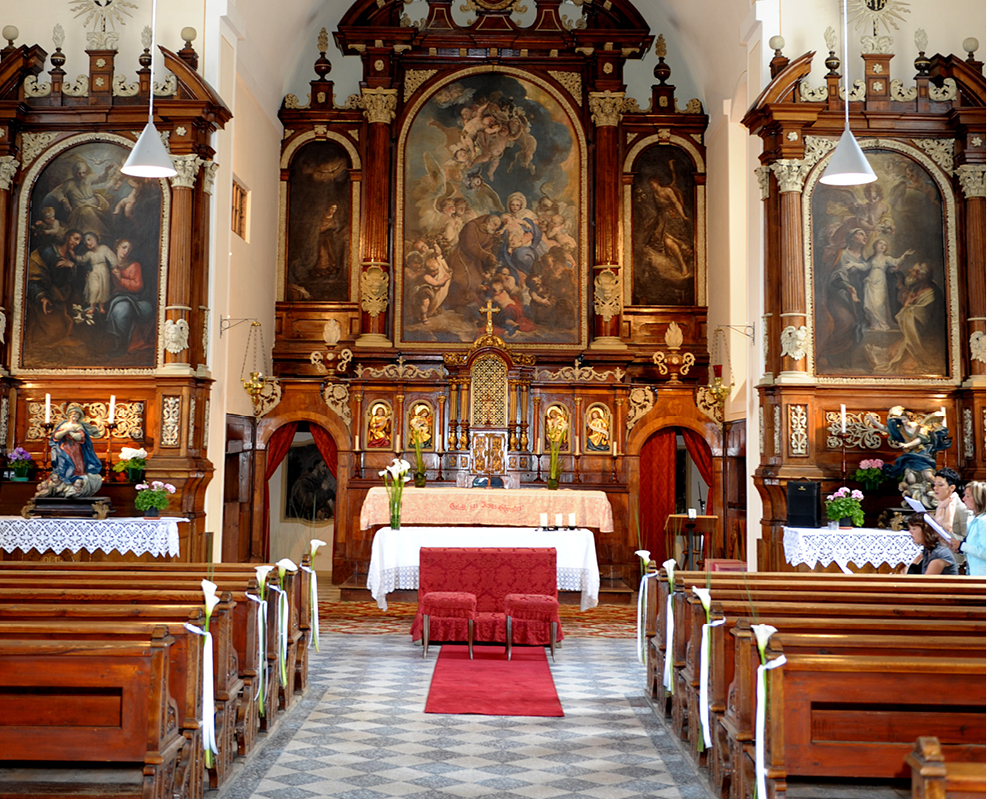 La pala dell´altare maggiore e quella della cappella laterale, entrambe terminate nel 1702, sono del famoso pittore e incisore lombardo Paolo Pagani (1655-1716), attivo nelle principali corti europee e celebrato come il pittore ufficiale della regina di Spagna.
